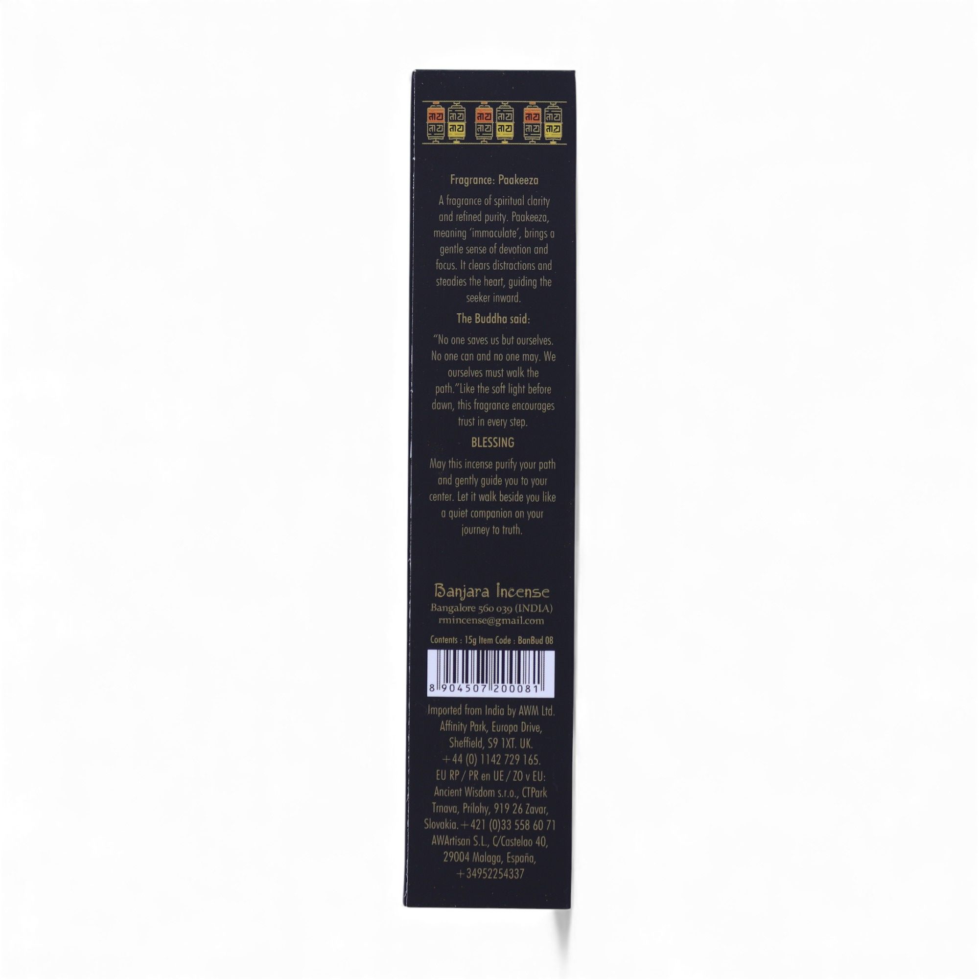 Cada paquete contiene varillas de generosa longitud que garantizan sesiones prolongadas de aromatización y reflexión personal. Con un uso moderado de una varilla diaria, un solo paquete de incienso Banjara Buda Camino te proporcionará semanas de bienestar aromático natural, acompañándote fielmente en tu camino personal de crecimiento interior y paz espiritual.